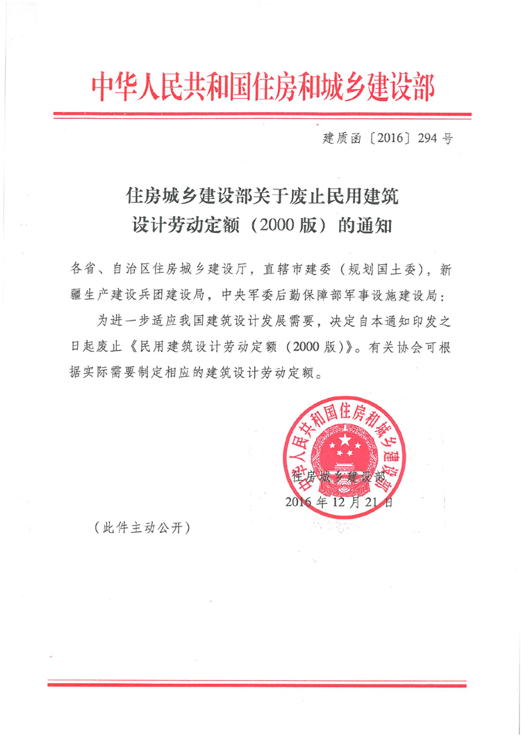 住房城鄉(xiāng)建設(shè)部關(guān)于廢止民用建筑設(shè)計(jì)勞動(dòng)定額(2000版)的通知