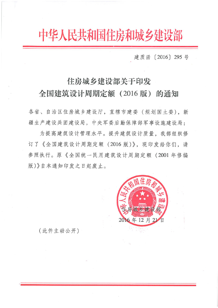 住房城鄉(xiāng)建設(shè)部關(guān)于印發(fā)全國建筑設(shè)計周期定額(2016版)的通知