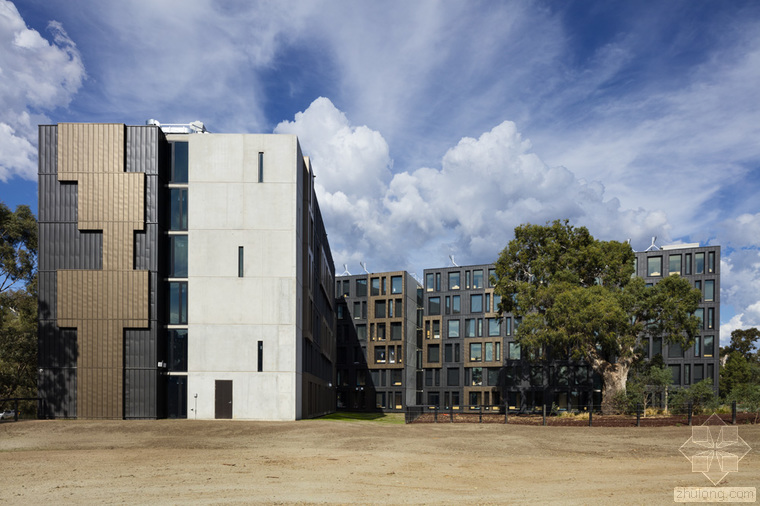 項(xiàng)目坐落于墨爾本本多拉地區(qū),是RMIT大學(xué)的學(xué)生公寓。RMA事務(wù)所受RMIT所托設(shè)計(jì)學(xué)生公寓,其設(shè)計(jì)將為在校生提供最好的居住環(huán)境。RMA事務(wù)所與RMIT以及公寓的經(jīng)營者Unilodge緊密合作,保證居住在公寓里的人可以享受到公共空間帶來的各種便利,并在核心區(qū)設(shè)計(jì)充足的學(xué)生活動功能。該建筑的設(shè)計(jì)是簡單的偏斜十字架,被澳大利亞古老的植物環(huán)繞。這些樹木包括以Wurundjeri氏族祖先命名的Keelbundoora Scarred Trees。