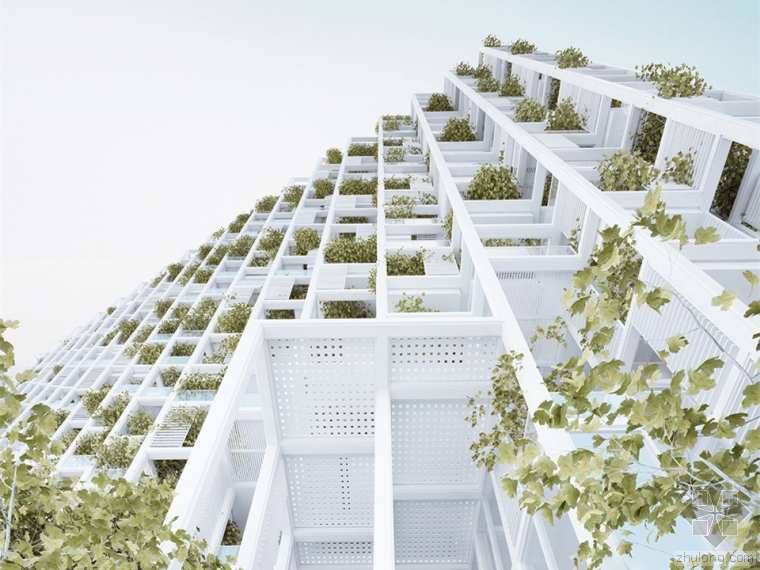penda首先將一棟建筑中的必要元素——結(jié)構(gòu)、墻體、外立面、天花、地面、基礎(chǔ)設(shè)施、陽臺和景觀等要素從傳統(tǒng)的整體思維中分解出來。然后從一個模塊化的格構(gòu)系統(tǒng)獲得靈感,在新的格構(gòu)系統(tǒng)中只有網(wǎng)格結(jié)構(gòu)和基礎(chǔ)設(shè)施是固定的部分。而其他的要素都可以通過工廠預(yù)制進行模塊化加工。這些模塊可以為客戶提供一份目錄,業(yè)主可從產(chǎn)品目錄中選取這些模塊。模塊范圍包括不同的地面單元、外立面單元、欄桿陽臺以及供植物生長的豐富多樣的花盆等。客戶可以任意選擇符合他們自己品位的元素進行搭配。penda希望為業(yè)主提供的是一個工具,使他們成為自己公寓的設(shè)計者。