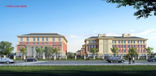 小學(xué)總平面布局將學(xué)校分為多個部分,教學(xué)樓設(shè)置于城市主干道一側(cè),其余各部分通過一條連廊進(jìn)行串聯(lián),這條連廊形成的開放空間使得各功能部分之間聯(lián)系更加高效。學(xué)校生活區(qū)由宿舍樓及食堂構(gòu)成,置于地塊南側(cè),與教學(xué)部分分開,既減少相互干擾,又便于管理。學(xué)校入口開放空間明確,并通過雕樓及柱廊形成特色入口空間及入口形象。校園建筑力求樸素簡潔,部分采用白色涂料,明快而素凈。