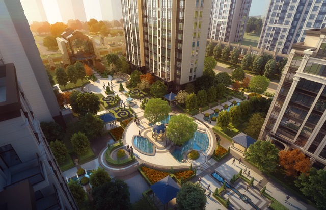 泰爾·書(shū)香頌項(xiàng)目在設(shè)計(jì)中,以中軸線呈現(xiàn)兩翼規(guī)整對(duì)仗,營(yíng)造出縱深尺度宏大的莊嚴(yán)與氣勢(shì),突出尊榮華貴的氛圍,利于減少戶型種類,減少施工難度,利于打造主次分明的景觀系統(tǒng)。